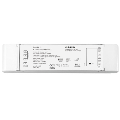 Led driver Dimmable RF, 0/1-10V, Push button Cubalux IP20 150 Watt 12VDC