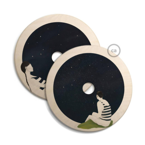 UFO Ξύλινο Φωτιστικό Πιάτο Διπλής Όψης εικονογραφημένο από καλλιτέχνες, Διάμετρος 33cm, Διακόσμηση: Chiara Fuca