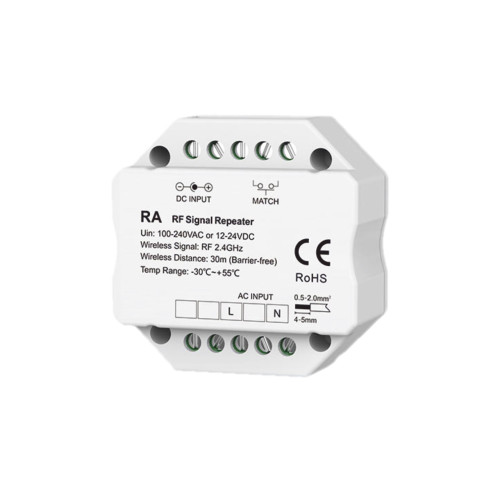 Τάση εισόδου100 - 240VAC - 12-24Vdc|Σήμα ελέγχου - εισόδουRF 2,4 GHz|Απόσταση Ελέγχου RF (σε ανοιχτό χώρο)30 μέτρα|Θερμοκρασία λειτουργίας (ta) Controller-30...+55 (° C)|(IP) κατηγορία προστασίαςIP20|Διαστάσεις controller ( M x Π x Y )52 x 52 x 26 (mm)|Βάρος98 g