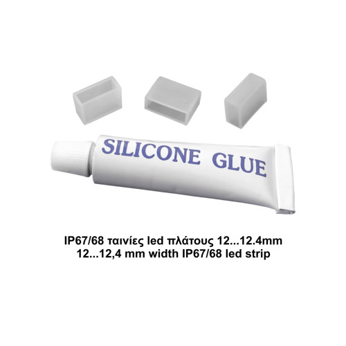 Σετ 3 τερματικές τάπες + σιλικόνη για ταινίες led IP67/68 πλάτους 12,4mm